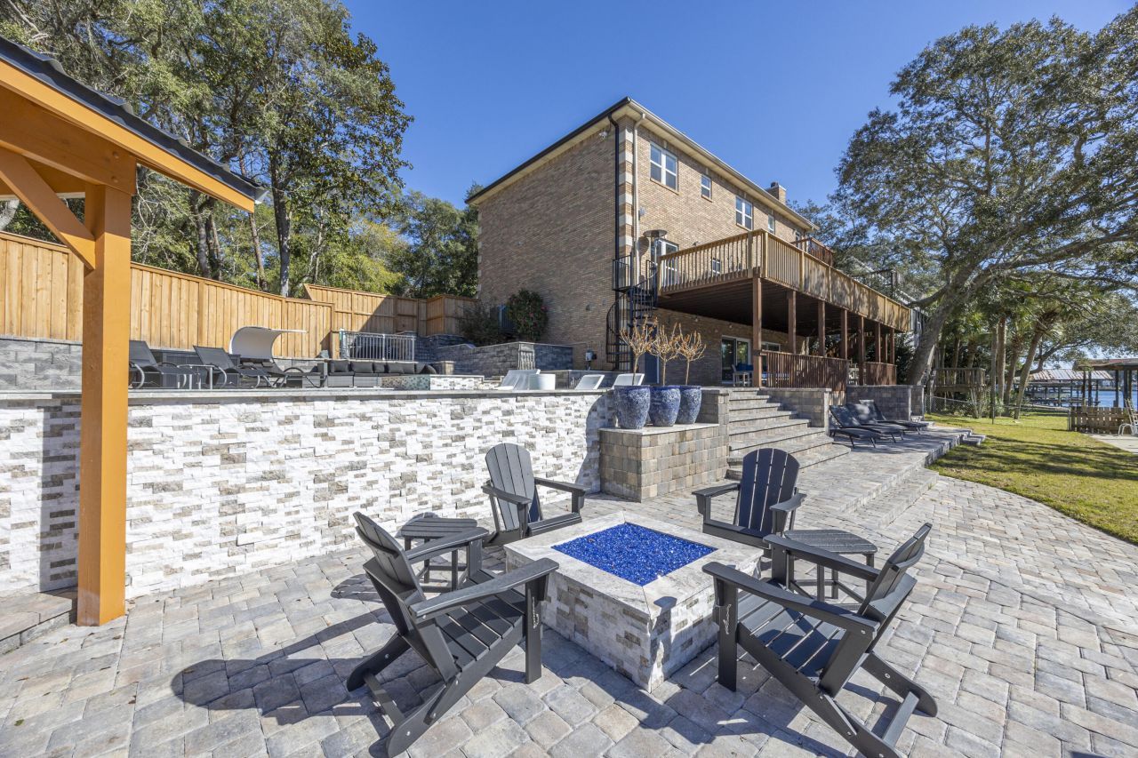 Experience elevated waterfront living in this stunning three-story brick residence, designed for both luxury & entertaining. Perfectly positioned along the water and bordering Eglin AFB property for added privacy, this home offers breathtaking views and exceptional indoor-outdoor living. The resort-style backyard is a true showpiece featuring a 2024 Gunite pool and spa, expansive paver patio, built-in brick firepit, outdoor kitchen, and fenced yard. Two oversized decks span the entire back of the home, one covered for year-round enjoyment, with a wrought-iron spiral staircase connecting the upper deck to the poolside entertaining area below. Boating enthusiasts will appreciate the private deck above the boat lift with additional lifts for your jet skis. Inside, the home showcases a spacious gourmet kitchen complete with stainless steel appliances, wine refrigerator, breakfast bar, and abundant cabinetry, opening to inviting living spaces ideal for hosting. A separate dining room and bright foyer with vaulted ceilings create an elegant first impression, while two fireplaces add warmth and character to the living room and primary suite. The top-floor primary retreat offers a peaceful escape with private deck access and beautiful water views, along with a walk-in closet and spa-inspired bath featuring double vanities, a garden tub, and separate shower. The lower level provides a fully independent mother-in-law suite with its own kitchen, living area, bedroom, and bathroom--perfect for guests or extended family. Additional updates include a new roof installed in 2021. A rare opportunity to enjoy luxury waterfront living with exceptional outdoor amenities and flexible living space.