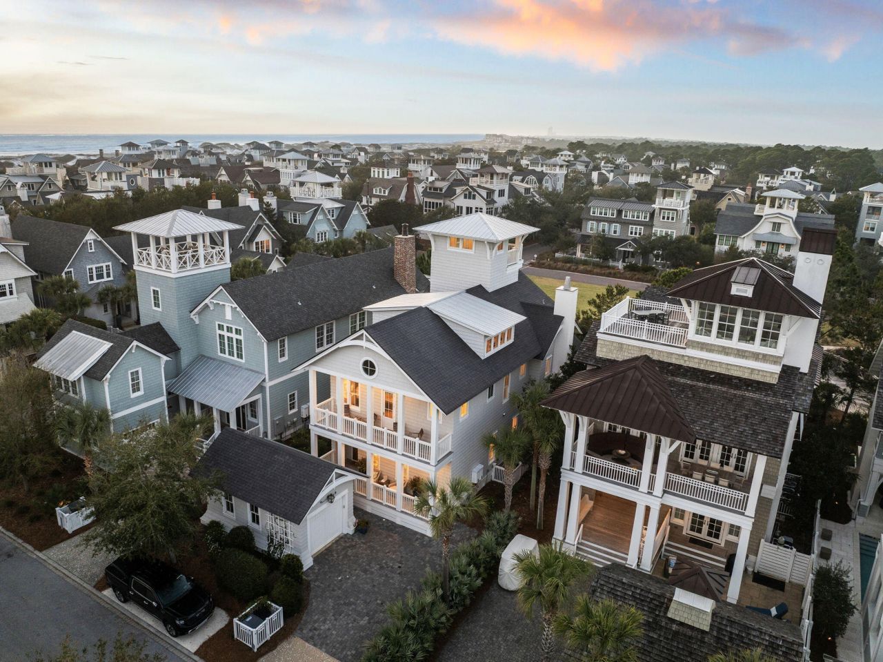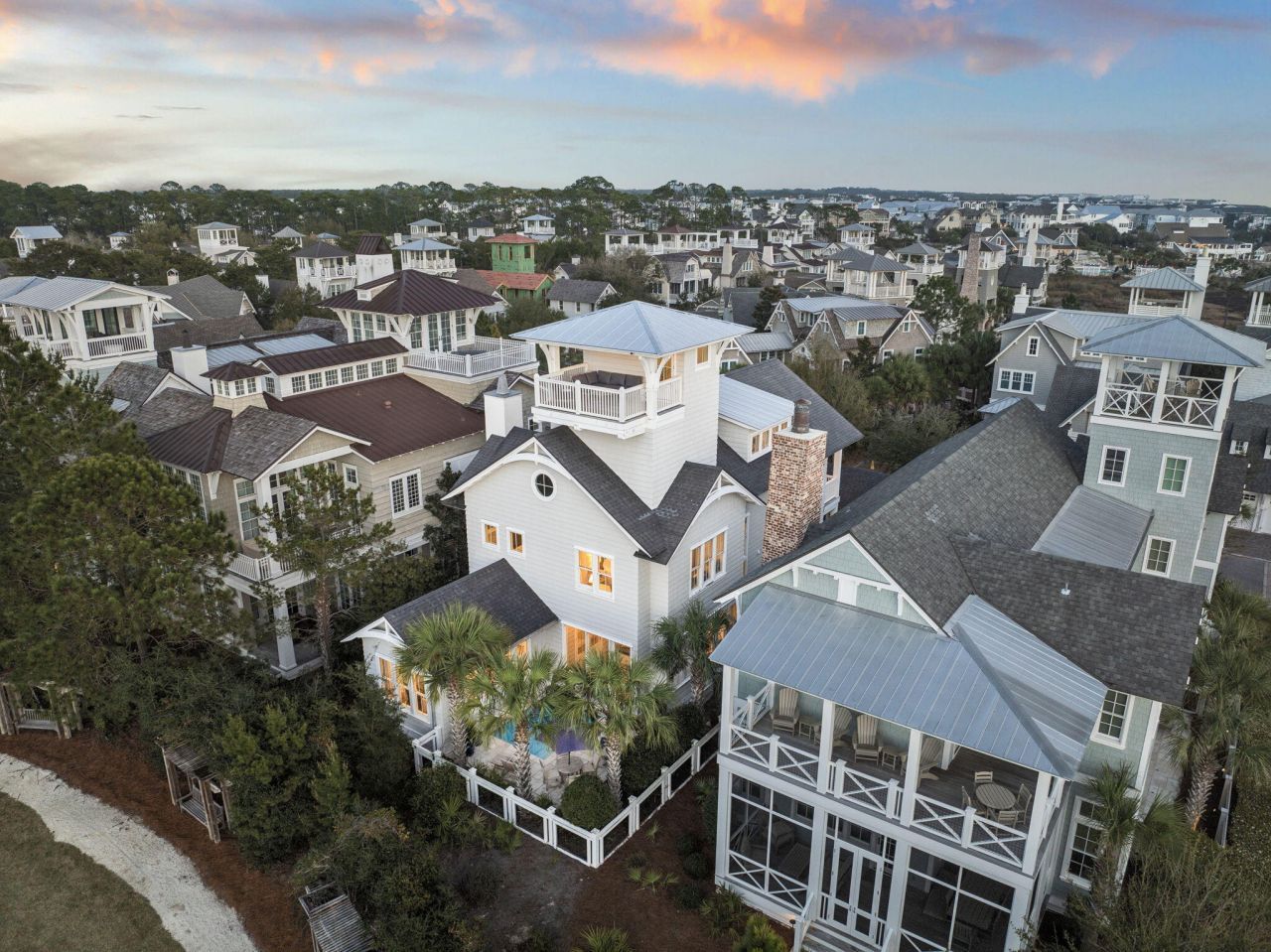 Positioned steps from the sugar-white sands of the Gulf, this exceptional Watersound Beach residence commands attention across four thoughtfully designed floors. Built in 2017 and encompassing 4,230 square feet, the five-bedroom, five-and-a-half-bath home is a masterclass in refined coastal living - where soaring ceilings, crisp white interiors, and a white brick fireplace create an atmosphere of effortless sophistication.The chef's kitchen is appointed with richly veined marble countertops and a full suite of Thermador appliances, including a six-burner gas range and double oven. Two generous primary suites, including a first-floor retreat, offer the privacy and serenity expected of a home of this caliber. A dedicated bunk room and third-floor game room with oversized screen speak to thoughtful design for gathering and entertaining at every level.Outside, a private pool and landscaped rear yard provide a serene escape, while the fourth-floor west-facing lookout tower reveals sweeping panoramic views of the Emerald Coast. Dual full-width covered porches invite unhurried mornings and golden-hour evenings alike. A detached garage and paved driveway complete the offering with ease and practicality.Within the gated Watersound Beach community, residents enjoy an unrivaled amenity collection featuring multiple pools, a private fitness center, miles of scenic boardwalks, a dog park, and one mile of deeded Gulf beach access. Short-term rentals are permitted, presenting a rare opportunity to own a premier primary residence, second home, or income-producing asset along one of Florida's most sought-after coastlines.