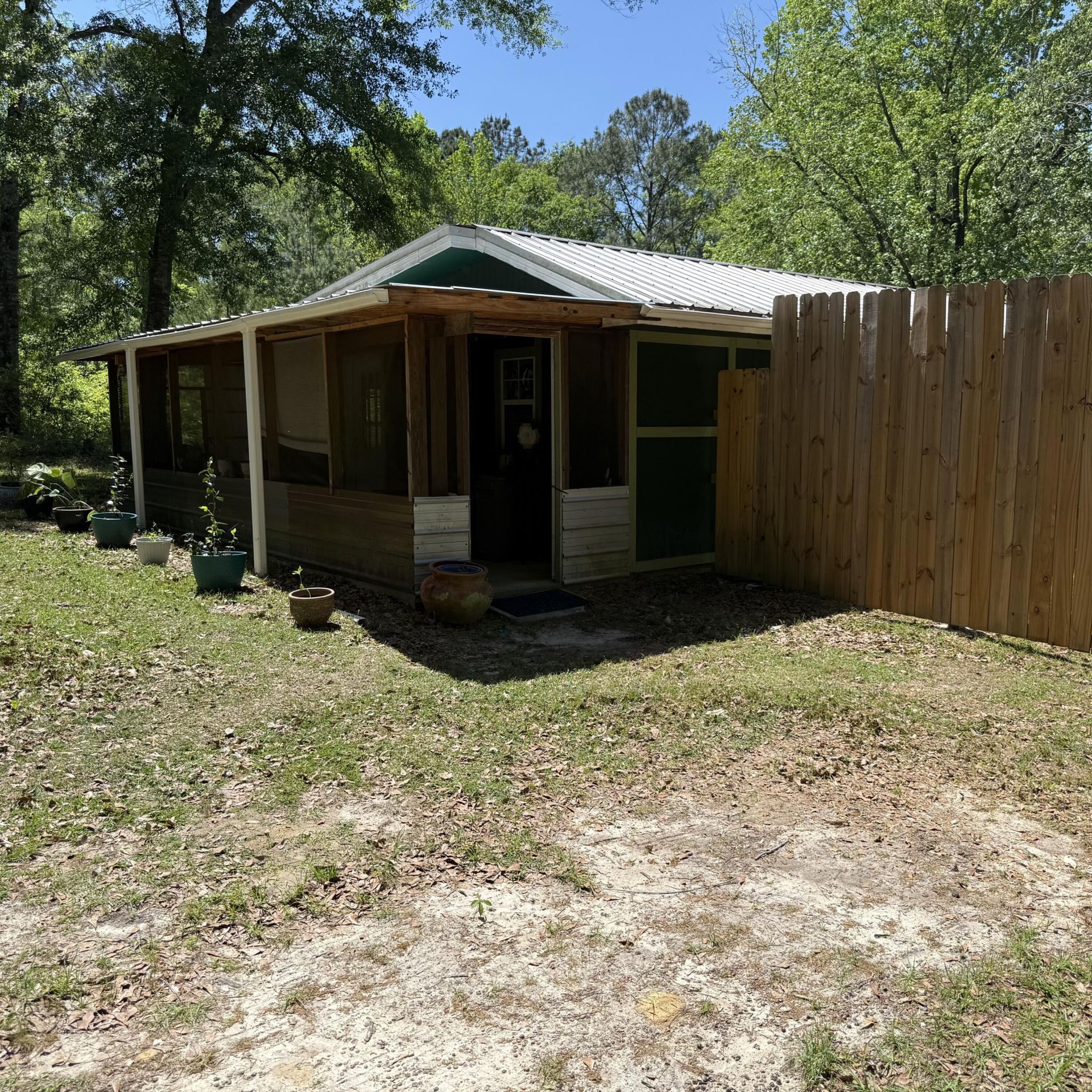 Discover the perfect blend of privacy, convenience, and country charm with this beautifully maintained homestead nestled on 1.2 acres in Walton County, south of I-10. Surrounded by nature yet ideally located, this property offers easy access to everyday essentials and local attractions--just 15 minutes to DeFuniak Springs, 20 minutes to Freeport, 20 minutes to Morrison Springs, and only 35 minutes to the stunning Emerald Coast beaches.This move-in ready 2-bedroom, 1.5-bath home is built on a solid slab foundation and features a thoughtfully landscaped setting with a peaceful, wooded backdrop. The fully fenced, park-like backyard is a true highlight, complete with satsuma and fig trees, as well as blueberry and blackberry bushes--perfect for enjoying your own private oasis. The home includes all appliances, and conveys fully furnished, making this an exceptional turnkey opportunity. In addition, everything needed to maintain the property is included--such as a 42 Husqvarna riding mower, a push mower, miscellaneous tools, and even fertilizer for the fruit and palm trees.Additional features include a 50-foot pole installed for reliable, high-speed internet at an affordable $50/month, a deep private well, and septic system--keeping utility costs impressively low. The property also offers three storage sheds and a lean-to, providing ample space for tools, equipment, and recreational items.For guests, a convenient 30-amp electrical hookup is located at the front of the property--ideal for RV or camper use. Enjoy peaceful mornings or relaxing evenings on the spacious screened porch, the perfect spot to take in the surrounding natural beauty.Closing available after July 12th.Contact the listing agent for details on available buyer incentives.