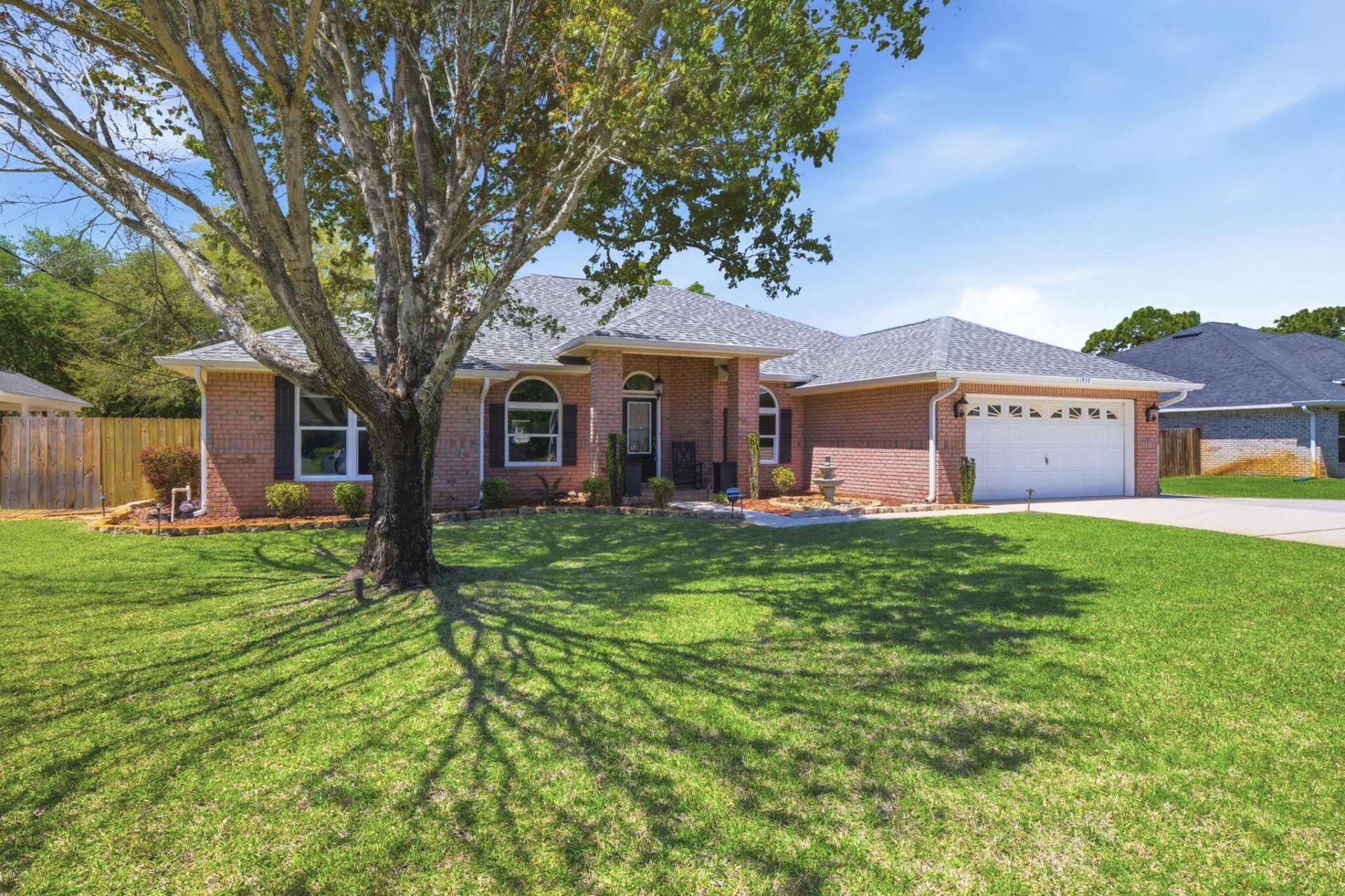 Welcome to this spacious and beautifully maintained and updated brick home nestled on almost half an acre in one of Navarre's most sought-after neighborhoods. Offering over 2,700 SqFt of living space - with 4 bedrooms, 3 full bathrooms, a gorgeous designated office with arched glass french doors, an expansive open concept main living space, an eat-in kitchen/breakfast nook, formal dining space, indoor laundry room, and more! Durable and beautiful wood-look tile flooring flows throughout the bedrooms and main living spaces, providing a modern aesthetic and easy maintenance. The kitchen features charming maple wood cabinets, an island with a new induction cooktop with downdraft vent, a KitchenAid wall oven and microwave combo, and granite countertops. The massive great room is accented by a a cozy, corner, wood-burning fireplace. Enjoy a split floor plan for added privacy. The primary suite boasts a tray ceiling and an oversized ensuite bathroom with walk-in shower, step-in tub, double vanity, and a walk-in closet. The remaining 3 bedrooms and 2 full bathrooms are on the opposite side of the home. Step outside the slider doors to the backyard Oasis - starting with a covered patio perfect for alfresco dining or relaxing in the shade taking in the views of the sparkling in-ground heated salt water pool - powered by natural gas. The backyard also includes a dedicated workshop and a storage shed. Enjoy peace of mind with all newer major systems - including a 2022 Roof, 2022 tankless gas water heater, and a 2024 HVAC and Air Scrubber. Ownership also grants you access to all the amenities Holley By The Sea has to offer - including a boat ramp, 8 clay tennis courts, a community event hall, 3 different pools, exercise room, and more! Schedule your showing today!