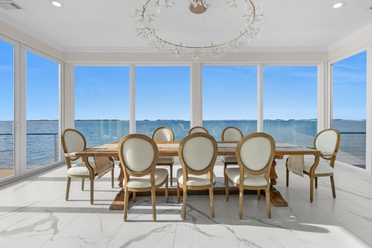 WRAP-AROUND WATERVIEWS! PRIMARY HOME, GUEST HOUSE, POOL, BOAT DOCK & PRIVATE BEACH! Introducing 320 Sunny Drive, THE Crown Jewel of Emerald Coast Waterfront with over 180-degree views from the Santa Rosa Sound to the Gulf. The 3B/2.5B main residence boasts views that will absolutely take your breath away! The first floor open concept is an entertainer's dream, while the second floor is a relaxing primary retreat. Even the separate 3B/2.5B guest house features water views from almost every room. The expansive waterfront pool patio is surprisingly secluded, with paved paths leading to the private beach, boat dock (2018), fire pit, shuffleboard and chess. Parking is abundant and Tesla ready. Inside Sandy Pointe, a gated community, 320 Sunny Drive is a MUST SEE!