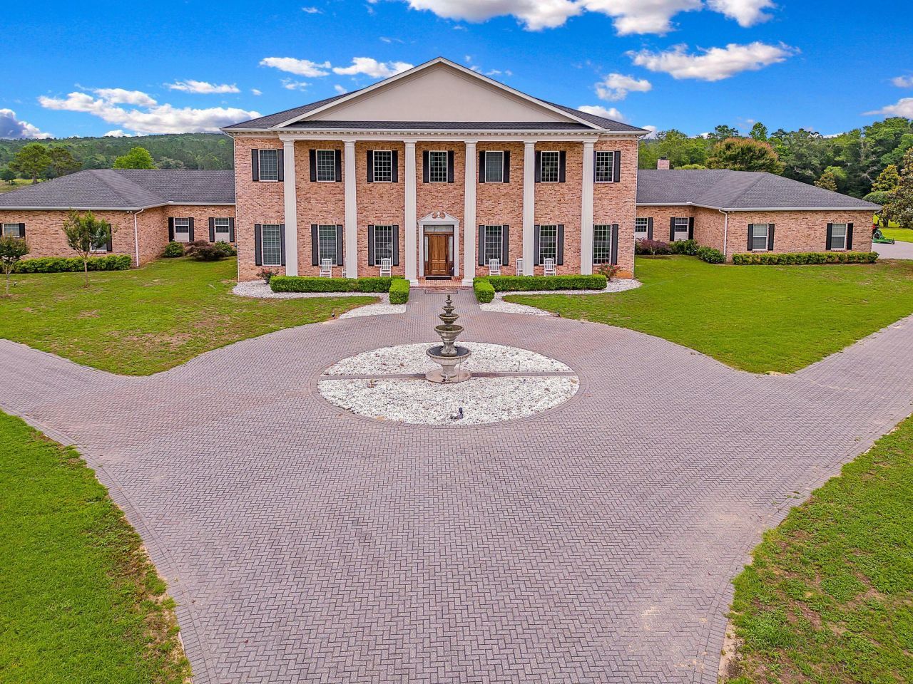 Privately gated and elevated above the surrounding landscape, 3400 Bonterra Drive (Good Earth) is one of Northern Okaloosa County's most iconic estate properties. Situated on 10.1 fully fenced acres, this 9,544± sq ft custom residence offers sweeping lake views, refined architecture, and resort-level amenities?ideal as a luxury retreat, equestrian estate, or exclusive event venue. A winding brick drive leads to a grand motor court with fountain and columned porch. Inside, a dramatic foyer features travertine floors, a domed ceiling, crystal chandelier, and dual sweeping staircases. Walls of windows provide abundant natural light and lake views throughout the home. Designed for entertaining and everyday living, the home includes multiple living areas, five fireplaces, and seamless indoor-outdoor flow. The primary suite offers lake views, a fireplace, and dual spa-style baths with sauna, steam room, jacuzzi tub, custom walk-in closet, and private laundry. The chef's kitchen features custom cabinetry, granite countertops, a butler's island, GE Monogram/Sub-Zero appliances, gas range, double ovens, multiple dishwashers, and oversized pantry. Upstairs includes a theater/media room, guest or in-law suite with kitchenette and fireplace, and additional ensuite bedrooms, accessible by staircases or a cherry-lined elevator. Built with Insulated Concrete Forms and 85,000 bricks, the home is engineered for exceptional durability and efficiency, with new Trane HVAC systems, tankless water heaters, whole-home generator, electric blinds, security system, and multiple garage bays. Optional 16-acre Fish Camp available separately, featuring a 2-bedroom cabin with stone fireplace, vaulted wood ceilings, and private dock. Owner financing may be considered.