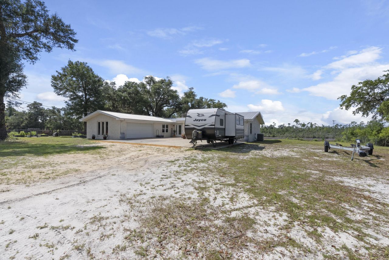 Rare opportunity to own a beautifully updated 3-bedroom, 2-bath brick home with Gulf access, situated on 5 private acres along Cook's Bayou. This property offers exceptional flexibility?bring the boat, RV, four-wheeler, or horse?with room to live, work, and play in a peaceful waterfront setting.Built in 1976 and thoughtfully renovated, the 1,855 sq ft home blends classic character with modern upgrades. Interior features include fresh paint, quartz countertops, new ceiling fans, and closet organizers throughout. The primary bathroom has been fully remodeled, and the kitchen is equipped with an induction cooktop, double ovens with convection and air-fryer modes, and stainless steel appliances?all less than three years old. Significant improvements include popcorn ceiling removal, 2024 HVAC, Honeywell programmable thermostat, Pristine Air UV filtration system, water softener, generator outlet, 2017 metal roof, hurricane ties for wind mitigation, and a whitewashed brick exterior.Outdoor amenities include a solar-powered gated entrance, 12'x32' shed, motorized screened back porch, raised metal garden beds, citrus trees, private pond, and mature moss-draped oak trees. Nearly $30,000 in dock upgrades include an expanded dock and 7,000-lb boat lift, providing direct access to the Gulf.Property sits on tidal waters with Gulf access through Cook's Bayou. Bridge vertical clearance is approximately 9'6, suitable for smaller boats. John Deere tractor and attachments convey with sale.Ideal for a private waterfront homestead, recreational retreat, or future expansionthis unique property offers space, privacy, and true Florida waterfront living.