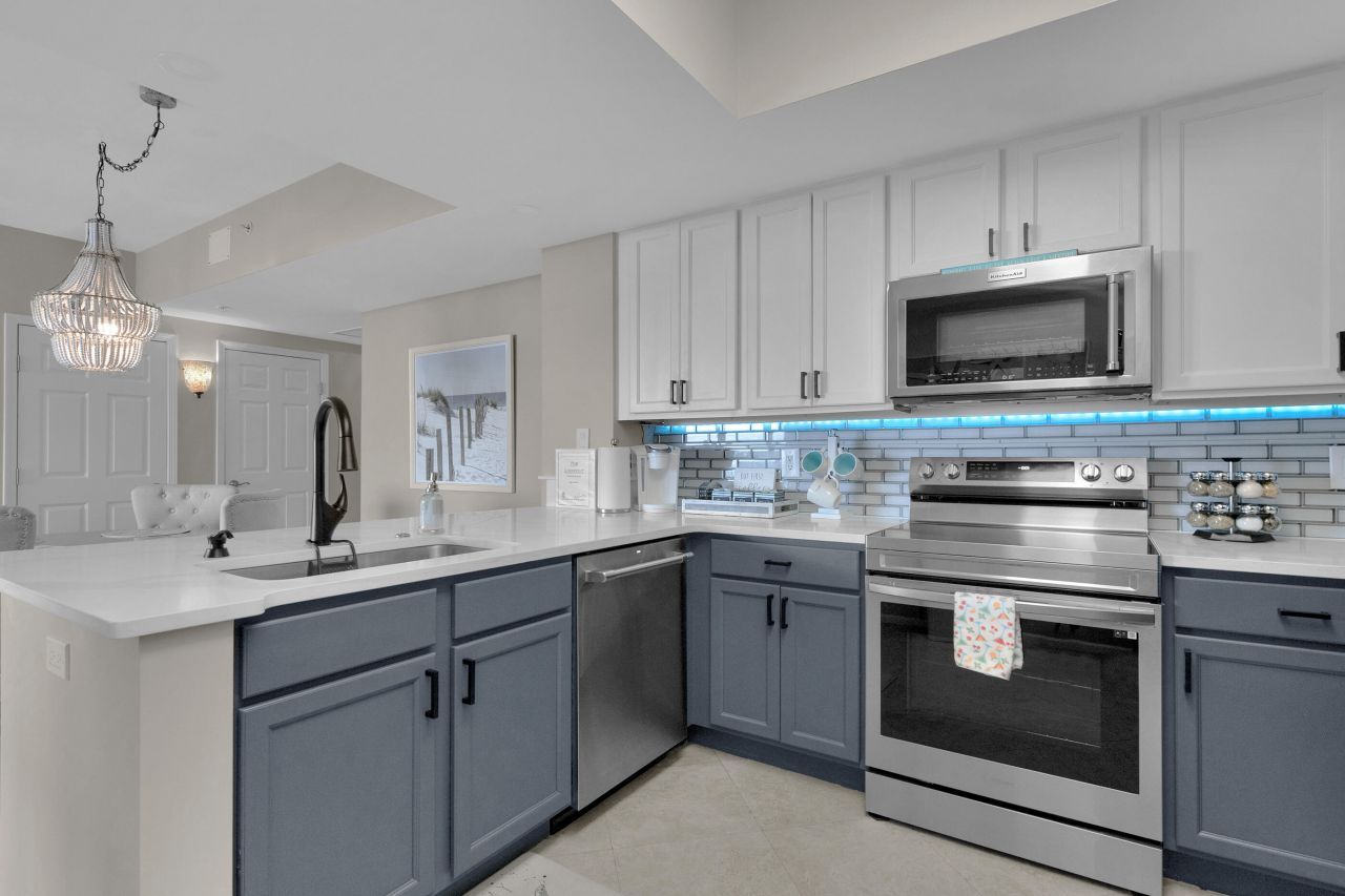 Under contract with 72 hour kick-out clause, contingent on Sale of Home. Accepting backup offers. Beautiful 9th Floor unit with a great view of the pool and gulf. There is tile and LVP throughout the entire unit. The kitchen features all new appliances. painted cabinets, new countertops, custom backsplash lighting, and it comes fully stocked. The balcony is the best part of the unit due to its size and view of the gulf. The balcony was repainted this past winter and looks brand new. Both bedrooms are large and the master has an attached bathroom with walk in shower.