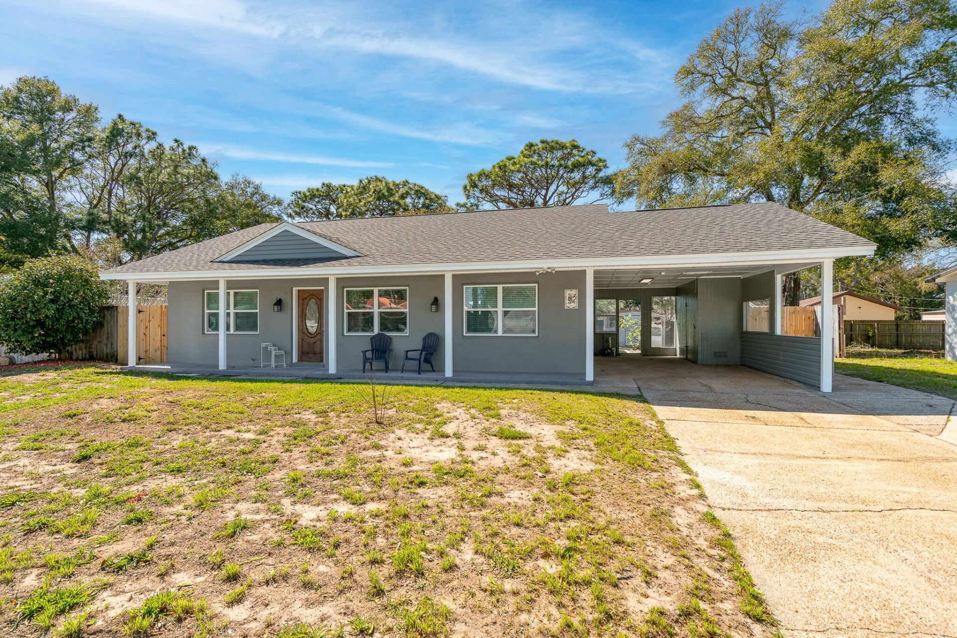 Welcome to this charming 3-bedroom, 2-bathroom home located in the vibrant city of Mary Esther, FL. This property boasts a spacious living room, perfect for entertaining or relaxing after a long day. The kitchen is equipped with modern stainless-steel appliances and updated fixtures. The luxury vinyl plank flooring throughout the home adds a touch of elegance and is easy to maintain. Step outside to a fenced-in yard, providing a private space for outdoor activities. The front porch is an inviting space to enjoy your morning coffee or unwind in the evening. As an added bonus, this home features a pool, perfect for cooling off during those hot Florida summers. This home is a perfect blend of comfort and modern living. Don't miss out on this gem in Mary Esther!