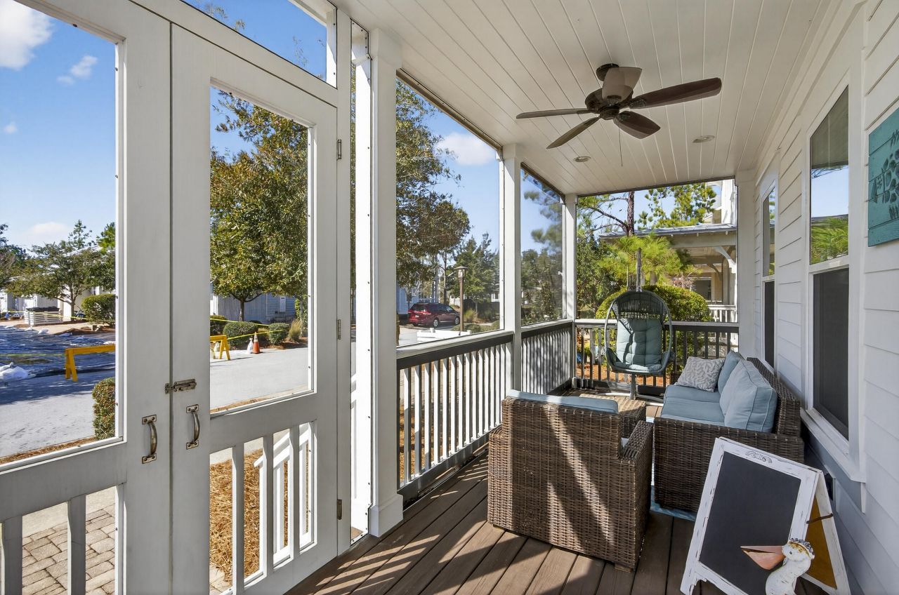 Welcome to 613 Flatwoods Forest Loop in the heart of NatureWalk at Seagrove, a thoughtfully designed home offered partially furnished and including a golf cart. Never rented and beautifully maintained, this residence backs to a serene wooded preserve, offering peaceful nature views and exceptional privacy while being just a short walk to the community pool.The extended garage provides rare flexibility with room to park both a car and a golf cart. Inside, the living room is warm and inviting with stunning white ceiling beams and a marble surround gas fireplace, perfect for those rare cool beach evenings. Shiplap accents welcome you in the entry and continue up the staircase, adding timeless coastal character throughout. The kitchen is a standout with white shaker cabinetry, marble countertops, and GE Cafe appliances including a gas cooktop, ideal for both everyday living and entertaining. All bathrooms are light and bright with classic marble countertops and subway tile in the guest baths.The spacious primary suite is a true retreat, featuring a large bathroom with a freestanding soaking tub, generous vanities, and two closets. Step outside to the private screened porch off the primary suite and enjoy tranquil views overlooking nature.Four screened porches extend the living space and invite outdoor enjoyment year round. NatureWalk at Seagrove offers exceptional amenities including a resort style pool, heated lap pool, pickleball courts, playground, fire pit, and scenic walking and biking trails connecting directly to the beach and surrounding 30A communities.