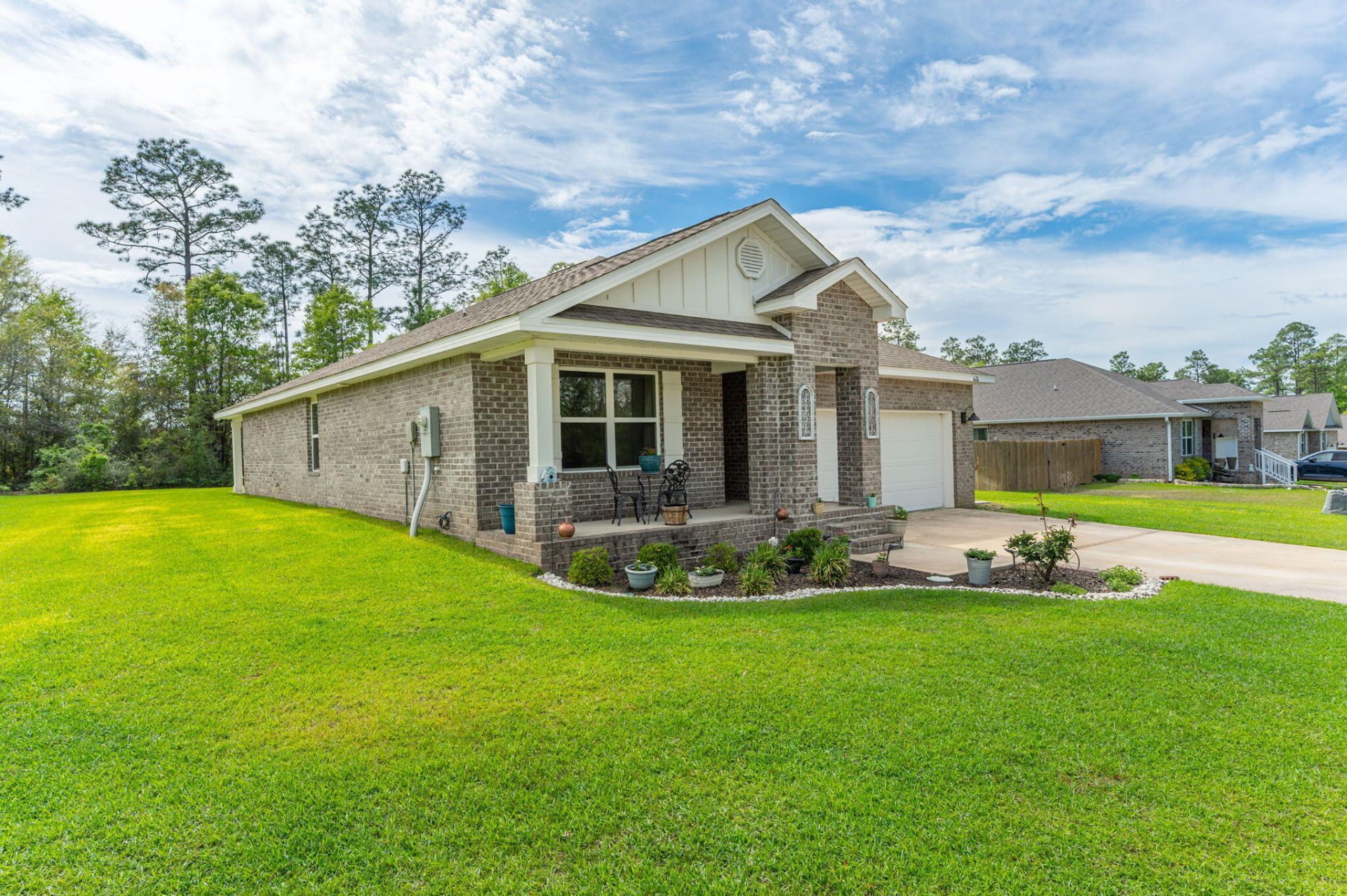 Welcome to this beautifully maintained all-brick, 4/2 home nestled in the highly desirable Heritage Plantation community. Ideally located in the section closest to the entrance, this home offers both convenience and a peaceful setting, backing up to a protected greenspace that will never be developed--providing lasting privacy and serene views.A charming covered front porch sets the tone, inviting you into a thoughtfully designed interior featuring durable LVP flooring throughout the main living areas. The open-concept layout seamlessly connects the kitchen, dining, and living spaces, perfect for everyday living and entertaining. The kitchen is both stylish and functional, complete with stainless steel appliances, a spacious island, and an eat-in dining area. The split floor plan offers privacy, with a well-appointed primary suite featuring double vanities and a generously sized shower.Additional highlights include a tankless water heater, underground utilities, and a covered back patio where you can unwind and enjoy peaceful, unobstructed views of the natural greenspace.Residents of Heritage Plantation also enjoy access to a community pool, adding to the neighborhood's appeal.This home combines comfort, charm, and a prime location--ready for its next owner to enjoy.