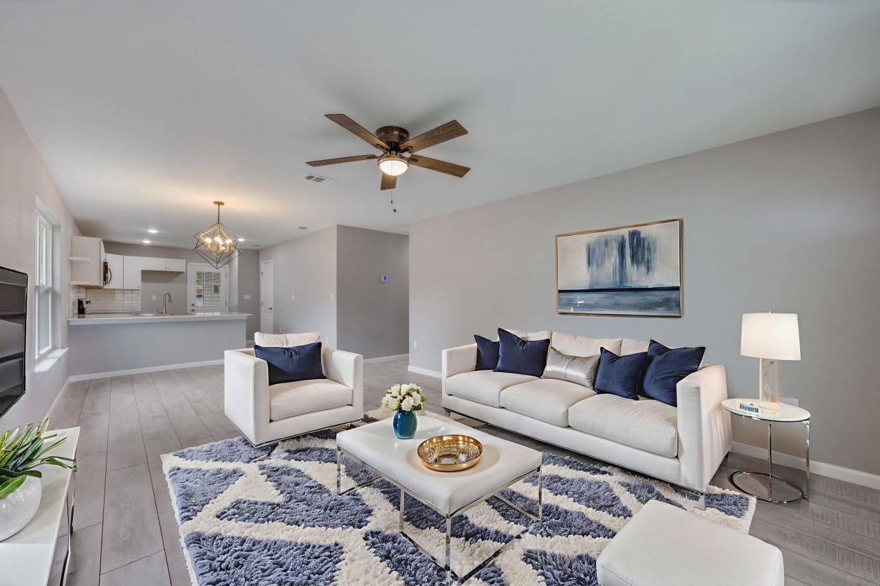 2024 new construction home offering 3 bedrooms and 2 bathrooms located in South Crestview. This home features an open-concept floor plan with luxury vinyl plank flooring throughout the main living areas, creating a clean and cohesive look. The kitchen includes granite countertops, stainless steel appliances, and a spacious walk-in pantry, with convenient flow into the living and dining areas. The primary suite features dual vanities and two walk-in closets for additional storage. Blinds and a refrigerator are included with an acceptable offer. Conveniently located with access to shopping, dining, and major roadways.