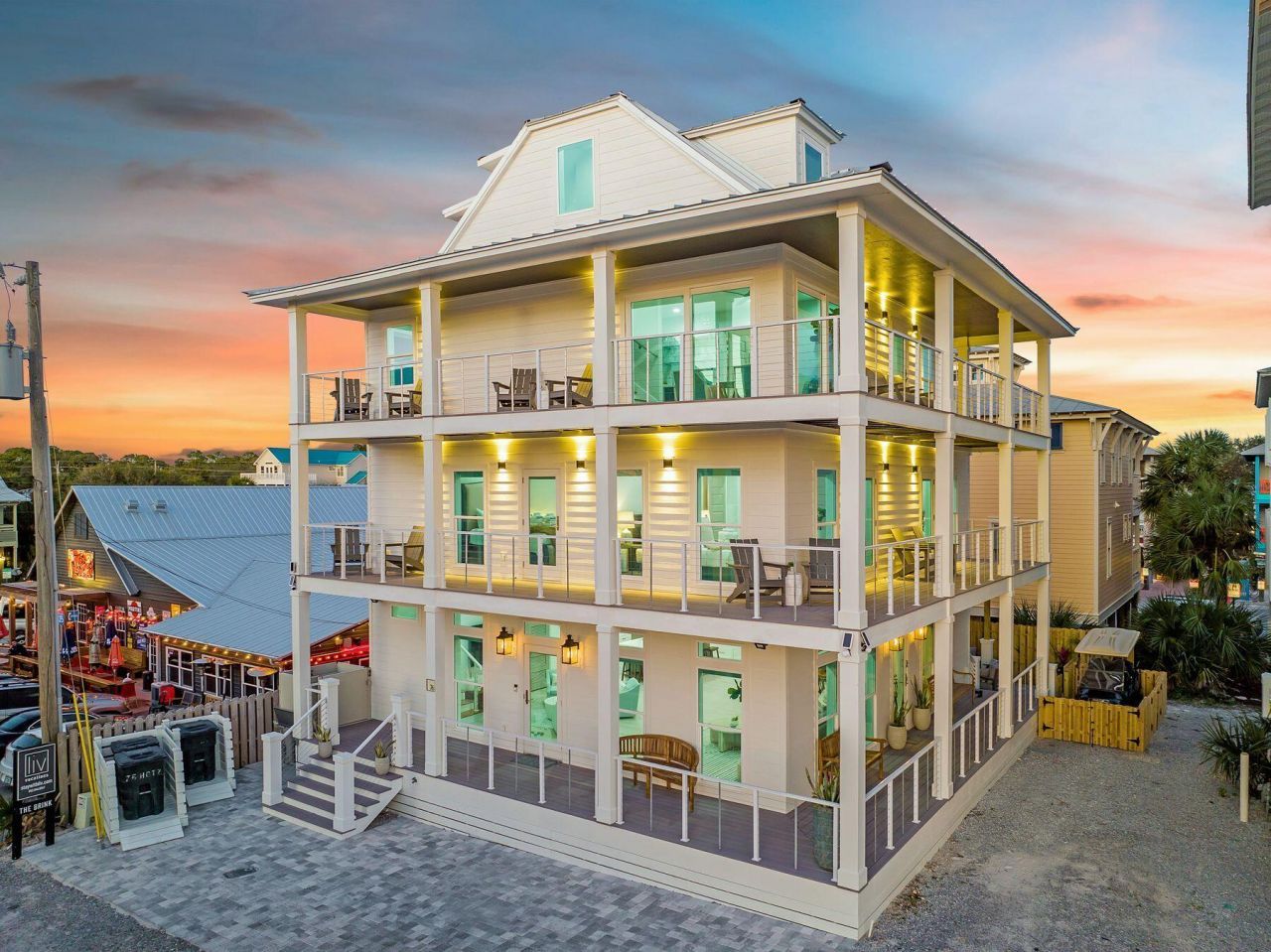Ideally positioned just steps from the sugar white sand, this exceptional residence captures the character of historic Grayton Beach and offers expansive gulf views from all four stories. The main living level is designed for effortless entertaining, featuring a spacious open floor plan anchored by a custom chef's kitchen with bespoke cabinetry, premium KitchenAid appliances, dual ovens, dual dishwashers, two sinks, a six-burner gas cooktop with a pot filler, an ice maker, a beverage cooler, and an expansive island seating area. The living and dining areas are generously scaled, highlighted by custom furnishings, a large dining space ideal for gatherings, and seamless access to a private outdoor living area. Outdoors, a private saltwater plunge pool is complemented by an outdoor kitchen with a gas grill, sink, and ample counter space, along with an outdoor shower, creating a relaxed yet elevated coastal retreat. Multiple guest suites span the upper levels, offering privacy, comfort, and flexibility for family and guests. Several bedrooms feature private ensuite baths and direct access to gulf-view balconies, creating serene personal retreats throughout the home. With a private elevator connecting all three levels, the home offers effortless access for every generation and is fully ADA compliant for added convenience. The upper-level cocktail lounge is a standout feature, offering unobstructed gulf views and a fully appointed entertaining space with a beverage cooler, ice maker, and sink, ideal for sunset gatherings. The top floor further includes a dedicated workspace, a spacious bunk room, a full bath, and an additional living space, offering room for everyone to spread out and unwind. Thoughtfully designed and meticulously appointed, this Grayton Beach property presents a rare opportunity to own a truly distinctive residence in an iconic location, where coastal elegance and everyday livability meet. Walton County Appraiser recognizes the Effective Built Date as 2021